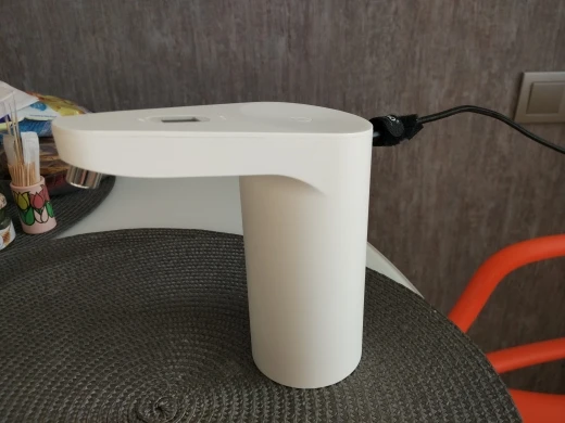 Помпа пришла быстро. Коробка пришла помятой, но сам товар цел и невредим. В комплекте нет шнура для зарядки. На бутылке 18.9 л сидит не плотно.